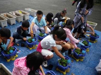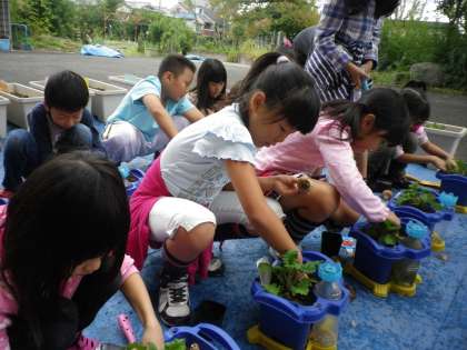 生活科の学習で,秋の花を植えました。ミニトマトを育てた鉢が空いているので,そこにスイセンを植えました。白い花か,黄色い花か,何色の花を咲かせるか楽しみです。