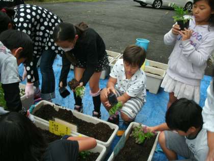 プランターに,ノースポールやビオラなどの花の苗を植えました。苗の植え方が上手になってきました。春が楽しみです。