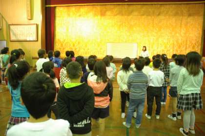 明日の学習発表会で披露する全校合唱曲の「ビリーブ」を練習しました。2年生は,朝の会と帰りの会で歌っているので,高学年に負けないくらい上手に歌えました。明日もこの調子で歌いましょう。