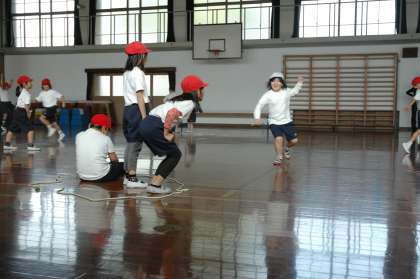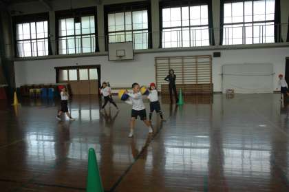 島鬼をして遊びました。続いて,ボール2個でドッチボールをしました。どちらもスリルがあってハラハラドキドキしました。