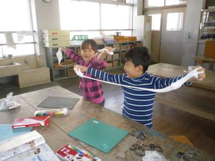 今日は,かみねんどを使ってのクッキーづくりです。大変よく伸びるので,歓声を上げながらねんどを触っていました。