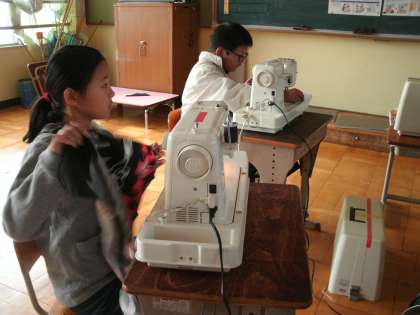 エプロンがやっと仕上がってきました。ミシンのかけ方も少しずつ上手になってきました。全員が仕上がるのももうすぐです。