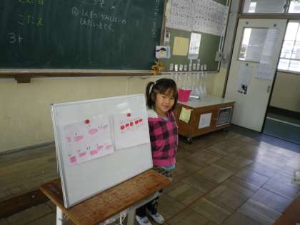 たし算やひき算のかみしばいをつくり,その問題をみんなで解きました。問題を出した人がみんなの丸付けをしてまわりました。「楽しかった。」とふりかえりの時に発表していました。