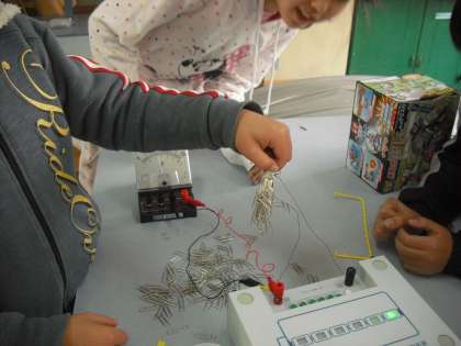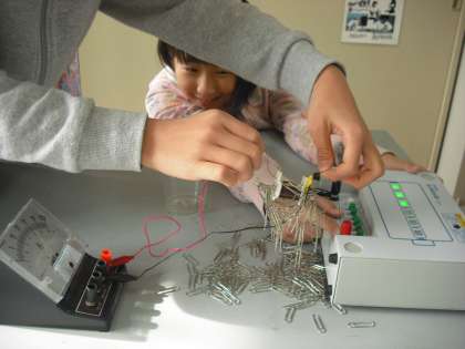 電源装置を使って,電磁石の強さを調べました。