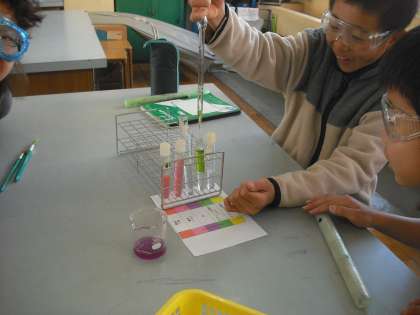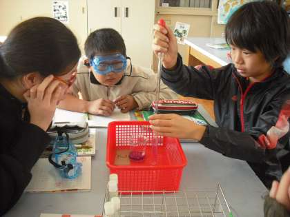 ムラサキキャベツ液を作って,水溶液の性質を調べました。