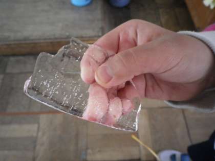 今朝は,大変冷え込んでいました。朝,「こおりがあった!!」と嬉しそうに教えてくれました。中間休みも見に行き,「まだあった!!」と見せてくれました。