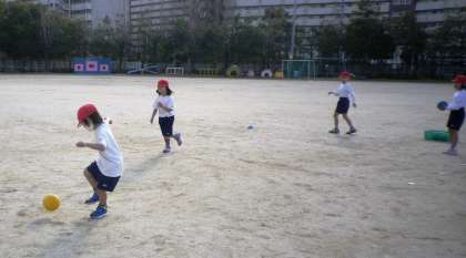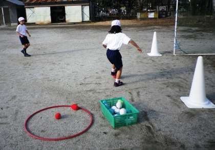 今日は,運動場でボールけりゲームをしました。ボールを止めるのが,うまくなってきました。