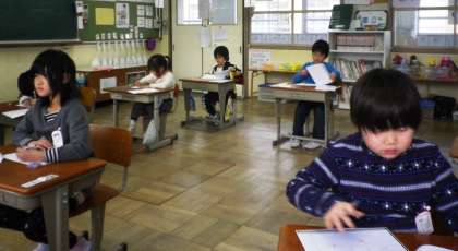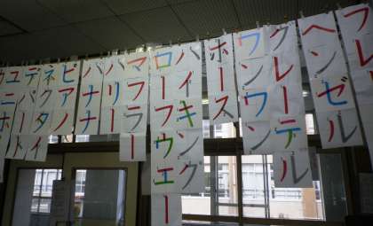 今日は,5時間目に,かたかなテストをしました。教室に掲示してきた35種類の言葉が書けるかに挑戦しました。