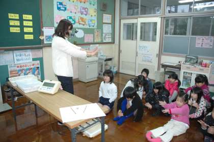 1月の身体計測をしました。前回に比べて3〜4cm伸びています。体重もそれなりに増えて大きくなりました。保健室の松尾先生にウイルスの話をしてもらいました。インフルエンザにかからないための手洗いの方法を教えてもらいました。