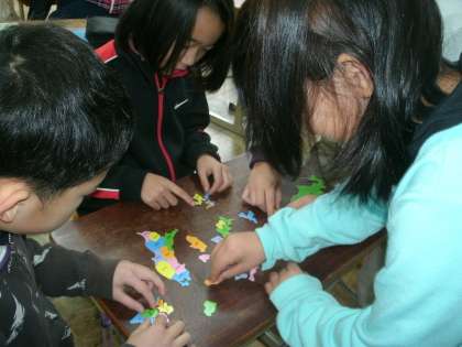 教室に都道府県パズルをおいています。位置や形を楽しく学んでいます。