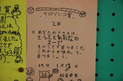 ペロリンコ賞は,「肉味噌炒め」と「豆腐の青菜のスープ」の2つです。残さずたくさん食べました。