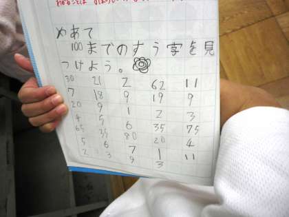 今日は,校内をまわり,100までの数をさがしました。たくさん見つけることができました。