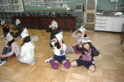 かぶとの作り方を地域の「楽生会」の方に教えてもらいました。立派な甲ができたので,下校の時も被って帰りました。