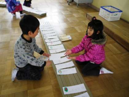 みんなが楽しみにしていたおみせやさんごっこをしました。品物の名前を言って買い物することやお客さんに対する話し方など昨日確かめたことを生かして学習ができました。