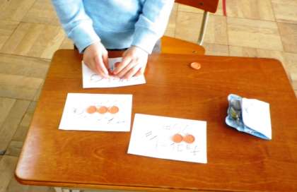 今日は100円で買い物できるおかしの組み合わせを考える学習でした。10円玉を使いながら,100円で買えるかを確かめていました。