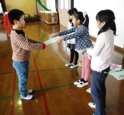 今日は2年生のおもちゃランドに招待してもらい,いろいろなおもちゃを楽しみました。表彰してもらえた人もいて,うれしそうでした。