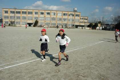 中間休みのランニングが始まりました。今日から12日まで続きます。5分間ですが,自分のペースに合わせて走りきりました。
