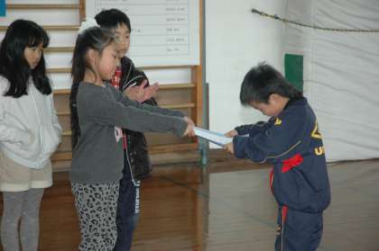 閉会式で,全員が感想を言いました。向島二の丸小学校からお礼の言葉をいただきました。楽しんでもらえたようで嬉しいです。