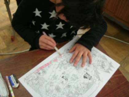 中間休みに,運動場のトラックの外側を5・6年生と一緒に,走っています。走り終わった後には,自分のがんばりをカードに記入しています。