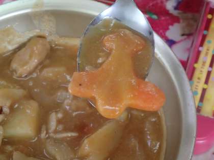ブラウンシチューに,飛行機の形をした,幸せニンジンが入っていました。入っているとやっぱり嬉しいものです。