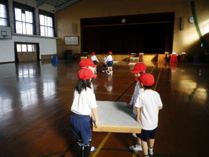 今日も「とびばこあそび」をしました。準備や片づけも9人で協力し手際よくしています。