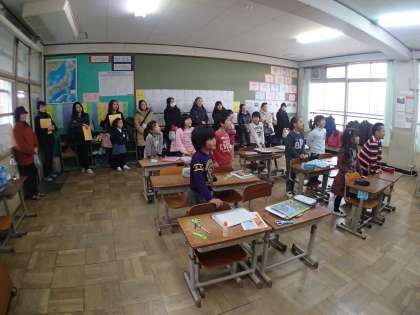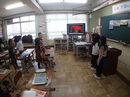国語の授業参観に続いて,帰りの会を観てもらいました。しっかり帰りの歌を歌っているところも聞いてもらいました。