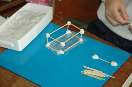 「竹ひご」と「ねんど」を「辺」と「頂点」にして,箱の形を作りました。辺と頂点だけで,面を作ることができます。見事に箱の形を作ることができました。