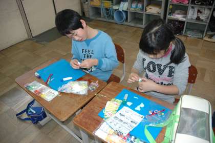 特殊な粘土を絵の具で着色し形を作ります。粘土が固まる前に磁石を付けて,かわいいマグネットマスコットが出来上がります。ストラップを付けてキードルダーも作れます。いつまでも使える磁石の完成が楽しみです。