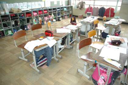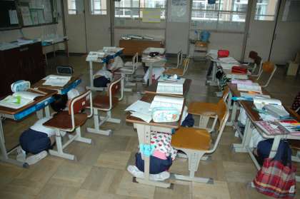 10時25分に訓練が始まりました。朝会で説明を聞いていたので迅速に命を守る行動できました。