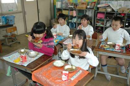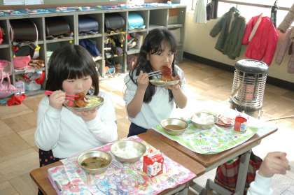 給食の献立は,6年生の卒業お祝い献立で,とんかつでした。みんな大好きです。喜んで食べていました。