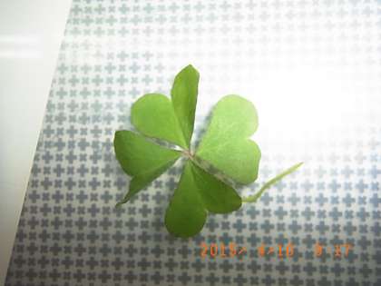 朝,教室に行くと「先生,これ見つけました」と見せてくれたのは四葉のクローバーでした。家の近くで見つけたそうです。小さな幸せのおすそ分けでした。ありがとう。