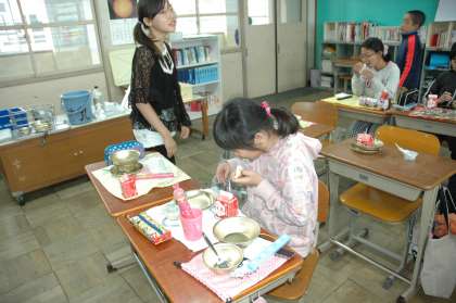 最初の給食はしっかりと準備をして,しっかりと食べました。何度も経験してきたので手際よく進めることができました。