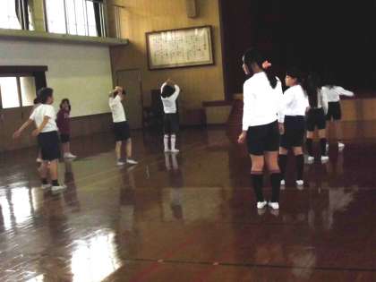 ランチャンの時間に雨が続き,体育館でのトレーニングになることが増えています。5.6年生はしっかり集合しきれいに体操をしています。