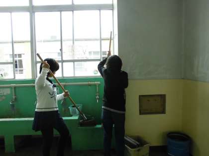 廊下もすみにほこりがたまっていました。ほうきではいて,モップをきちんとかけてくれました。モップの後始末も完璧でした。