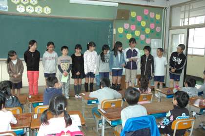 広島に持って行く折り鶴を1年生にも折ってもらいます。6年生全員でお願いに行きました。そして一人一人に教えました。1年生の思いも広島に持って行きます。