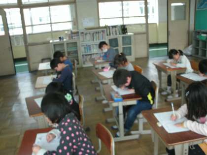 5時間目の前に,計算練習をしました。5分間で90問の1ケタ+1ケタの足し算に取り組みました。「まちがえないように,そしてできるだけ速く」を練習しました。みんな真剣な表情でがんばっていました。