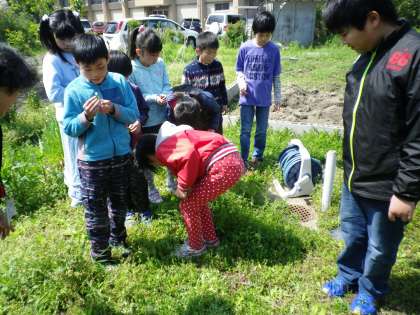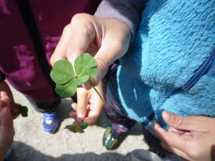 ビオトープに自然観察に行きました。四つ葉のクローバーを見つけたと教えてくれました。ふれあい農園にも行きました。