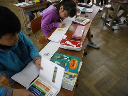 「白いぼうし」の人物しょうかいカードをつくり始めました。しっかり読み取っていきましょう。