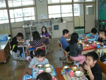 今日は親子煮でした。子どもに人気のメニューです。おかわりしたいと何人もが手を挙げていました。