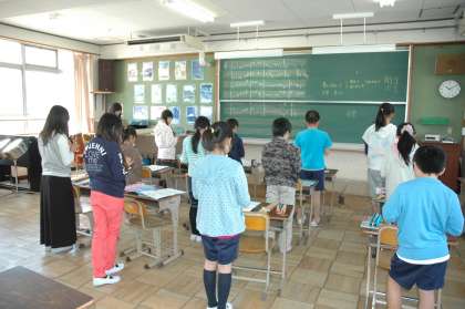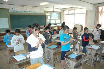 修学旅行で広島を訪れる際に,平和集会を予定しています。その時に,平和を願いながら「折り鶴」をリコーダーで演奏します。音楽の時間に練習しています。