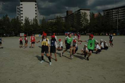 教室から出て運動場で決定したチームで走ってみました。200mリレーはさすがにばて気味なチームもありました。