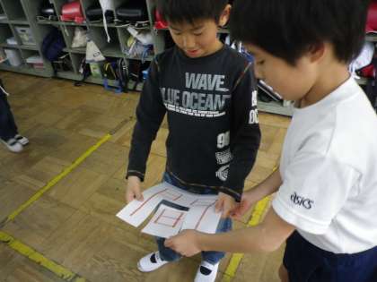 漢字の組み立てを学習しました。ばらばらになったカードを合わせて漢字をつくっています。