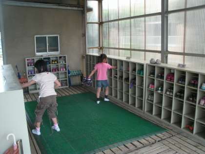 2年生になってからは教室以外の場所も掃除しています。靴箱のロッカーや金太ロードなどを丁寧に掃除していました。