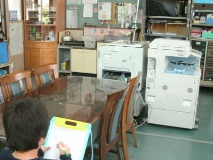 1年生に学校を案内するために,色々な教室のことを調べています。給食室や職員室など普段はなかなか入れない場所も見学しました。