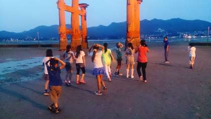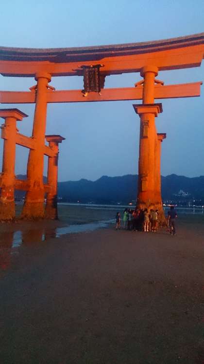 夕食の後,夕暮れ時の散策。大鳥居の前まで来ました。