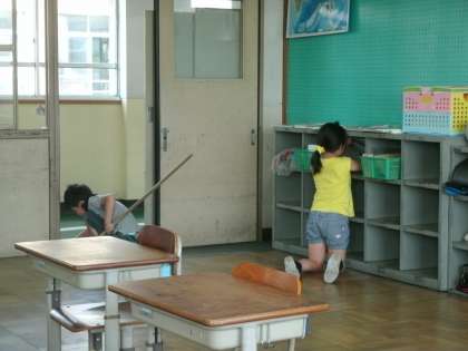 教室掃除は少ない人数ですが,ロッカー中まで丁寧に掃除しています。