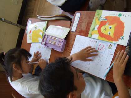 「ひ」の学習。一画で書けますが,バランスが難しいです。