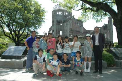 広島に着いて,すぐに平和記念公園へ。初めて見る「原爆ドーム」に声を無くしていました。