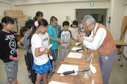 杓子作りを体験しました。形ができている杓子に焼き印をします。力のいれ具合と,均一に押す時間とが難しかったようです。