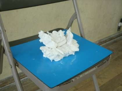図工の時間はねんどを使って,「なんだかわからないものをつくろう」ということでひねり出したり,切り取ったり,くっつけたり,型ぬきしたりして,不思議な形を作りました。完成したあとは,友だちから何に見えるか意見をもらいました。